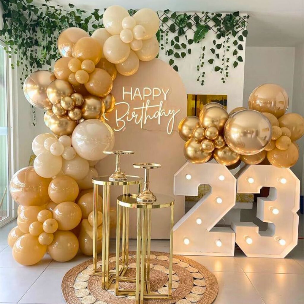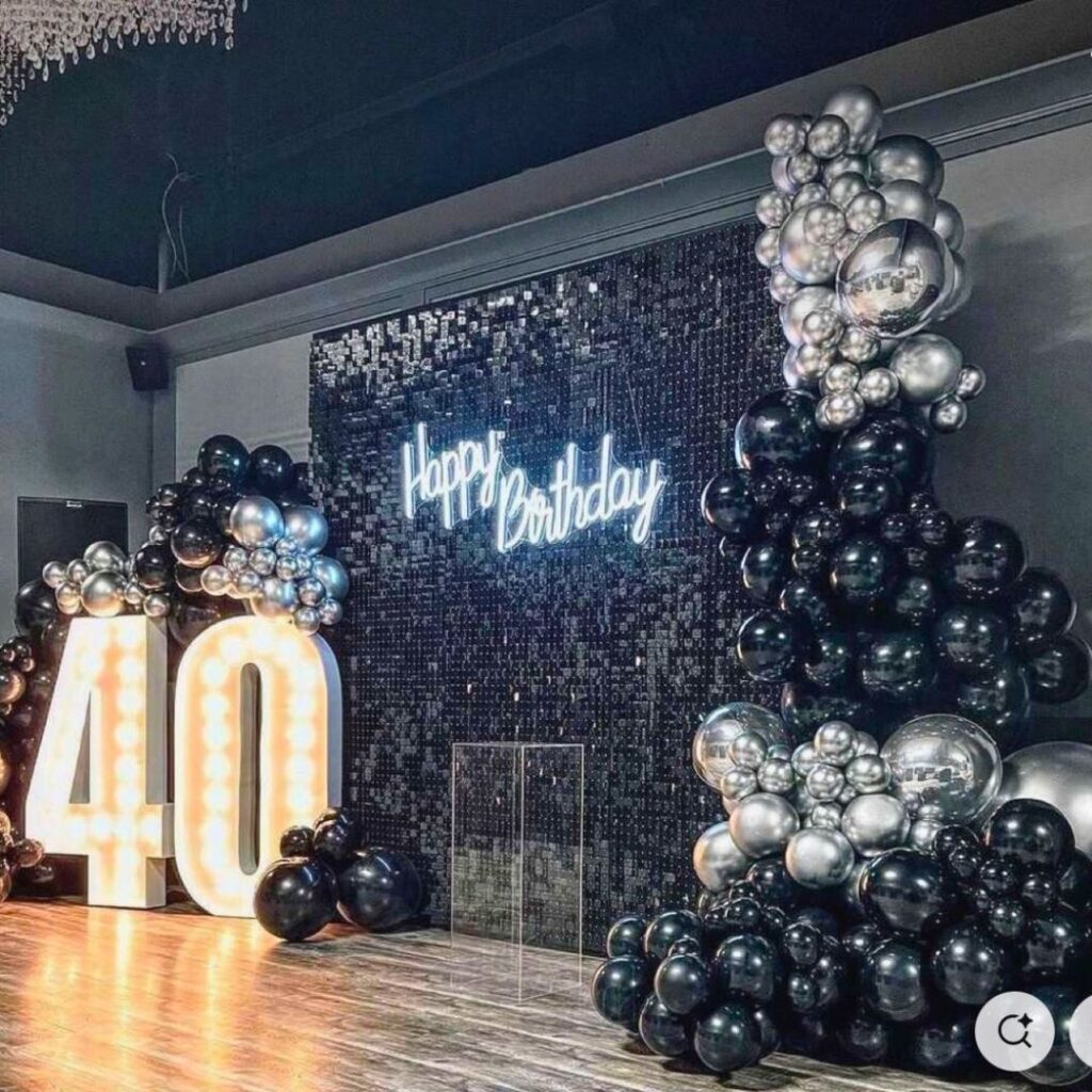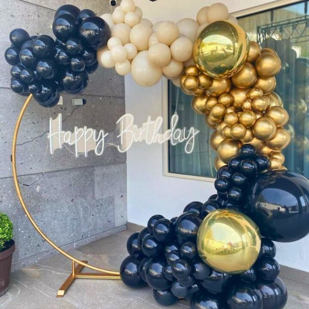 Agrega: globos con helio extra, figuras especiales, números gigantes, letras con luces, peluches, mesas dulces y más.