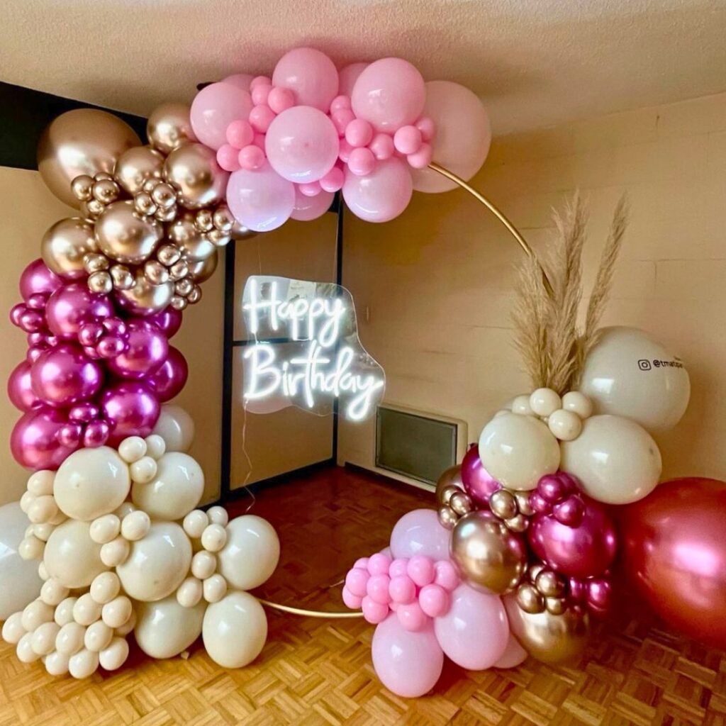 Ya sea que estés organizando un cumpleaños íntimo, una boda elegante, un baby shower tierno o un evento corporativo con impacto, estamos aquí para ayudarte a crear una ambientación mágica, diseñada totalmente a tu medida con nuestras espectaculares decoraciones con globos.